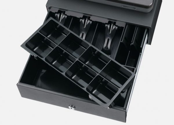 The built-in thermal printer prints out sales receipts on 58-mm-wide paper at a speedy rate of approximately 12 lines per second. A graphic logo can be printed out as well, helping to further promote your business. Plus, the drop-in paper loading mechanism allows you to change paper rolls quickly and easily.